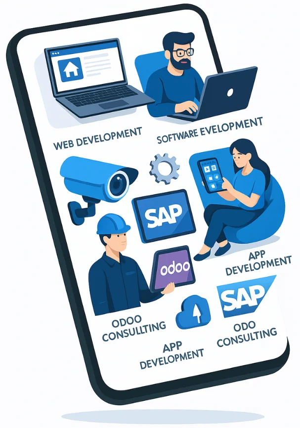 Nuestra misión es abrirle una ventana al mundo a tu empresa a través de la tecnología. Desarrollamos software y sitios web a la medida, ofrecemos consultoría especializada en SAP y Odoo, realizamos integraciones tecnológicas e instalamos sistemas de videovigilancia que cuidan tu operación